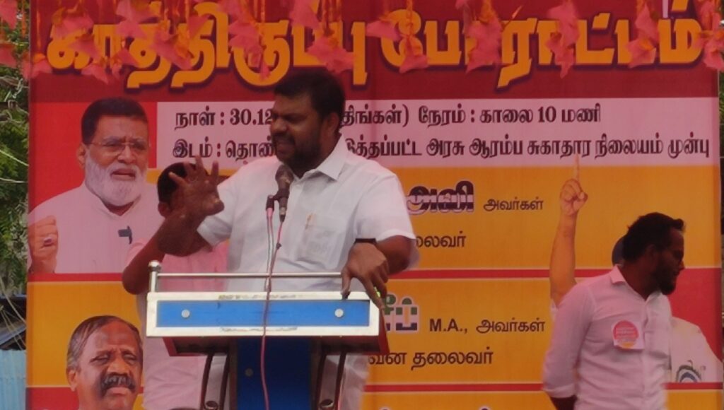 இராமநாதபுரம்: தொண்டியில் மேம்படுத்தப்பட்ட அரசு ஆரம்ப சுகாதார நிலையத்தை அரசு மருத்துவமனையாக மேம்படுத்தவும், நிரந்தர மருத்துவர்களை உடனடியாக நியமிக்க கோரியும் இன்று 30 டிசம்பர் 2024 தொண்டி மக்கள் நலப்பணிக்குழு, மற்றும் சுற்று வட்டார பொதுமக்களாலும் ஒருங்கிணைத்து காத்திருப்பு போராட்டம் நடைபெற்றது. இதில் எஸ்.டி.பி.ஐ யின் மாநில தலைவர் நெல்லை முபாரக் உட்பட பல தலைவர்கள் கலந்து கொண்டனர்.